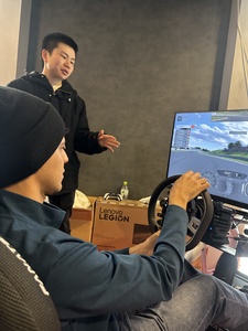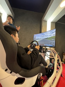 ZENKAI RACINGさん提供のFANATECシムが試遊できるようになっていて、そちらの運用ご担当で、スタッフ岡田衛さん(以前ラジオゲストにお越しくださった