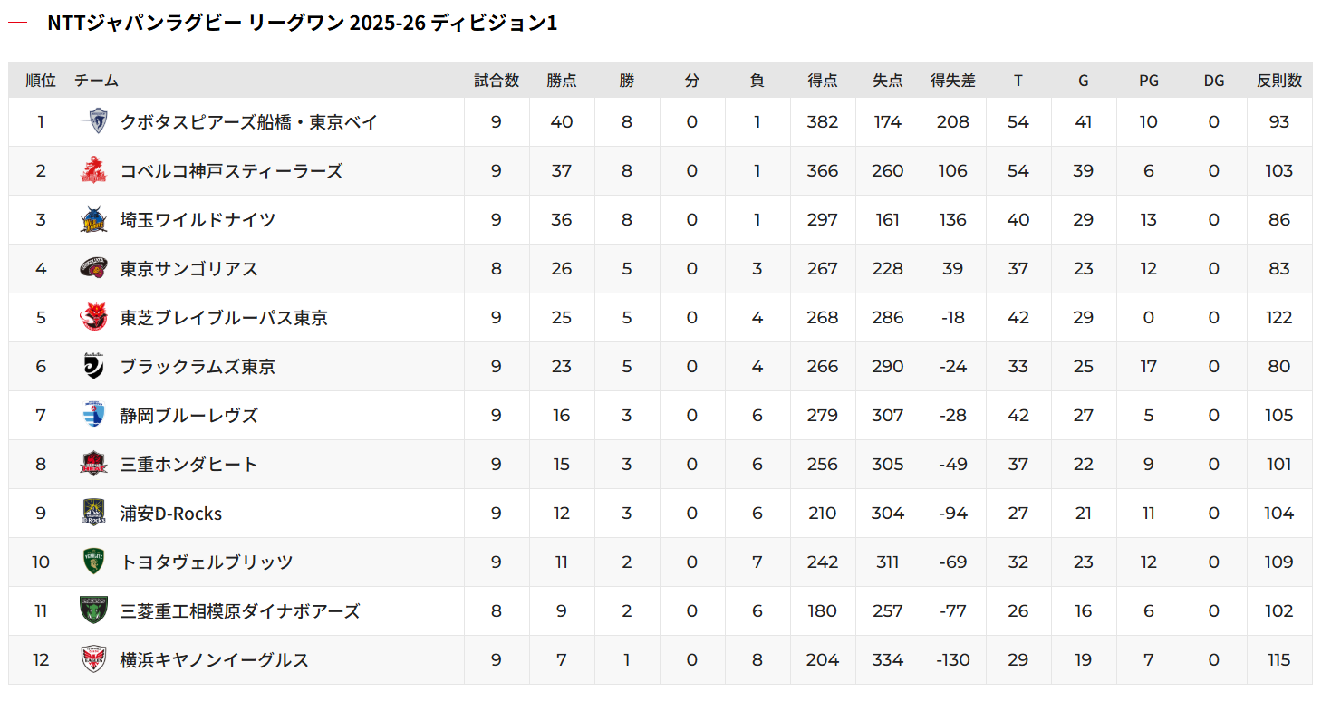2026年2月22日現在の順位表はこちら