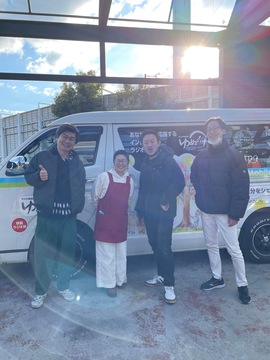 ※バックにあるのは、移動収録スタジオ『ゆめのたね号』です!