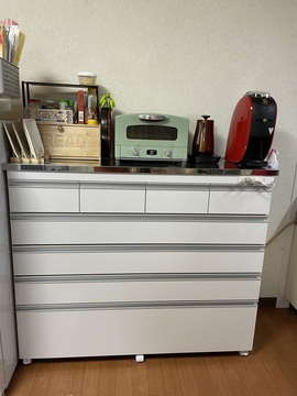 その上は、別の引き出し数段に分散収納していた、調味料や乾物など。
