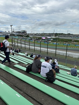 土曜の予選後、仮設A席でぼーっとしていたら、チームのいろんな人が続々ランニングに出発してました。