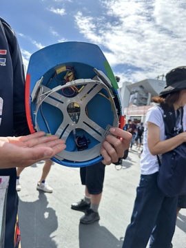 ヘルメットのカラーリングは、グランプリごとに違ったりすることもありますし、しかもそういうのは直前にしか発表されないので、忠実に再現するには時間が必要であるにもかかわらず、間に合うように仕上げてしまうという、情熱と気合と器用さその他諸々に対する、世界の驚きと感動が感じられる瞬間でもありました。