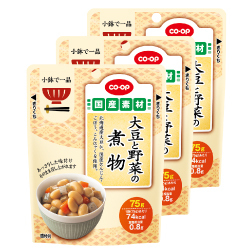- 大豆と野菜の煮物(常備品で消費期限が近い買い置きをそのまま食べる)