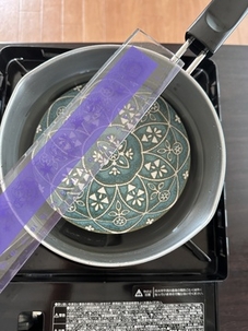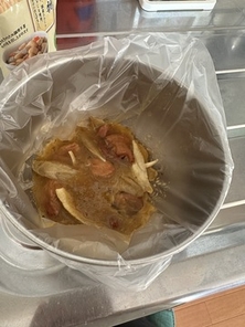 底には、ポリ袋が溶けないように15cmのお皿を入れ、水約650mlを入れています。