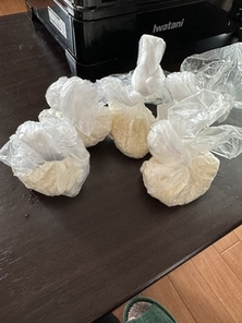 2合ずつに分けると発生する余りを↓のように50gずつにして冷凍庫に入れてます。