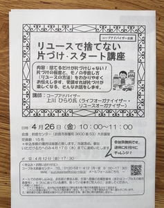コープみえ鈴鹿センターよりご依頼いただいた、片づけ講座で講師をしてまいりました。