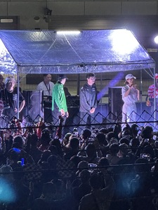 アフターレースグリッドパーティは開催されたので、分散帰宅も狙い、観戦仲間たちとグラスタから様子を眺めつつ、夕方のママケンラジオ体操も行いました。