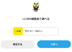 などを選ぶだけで、あなたの家庭におススメの備蓄リストを作ってくれます。