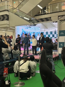 ZENKAI RACINGさん提供のFANATECシムが試遊できるようになっていて、そちらの運用ご担当で、スタッフ岡田衛さん(以前ラジオゲストにお越しくださった