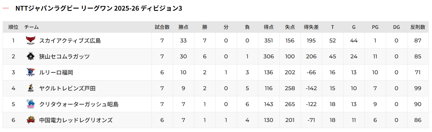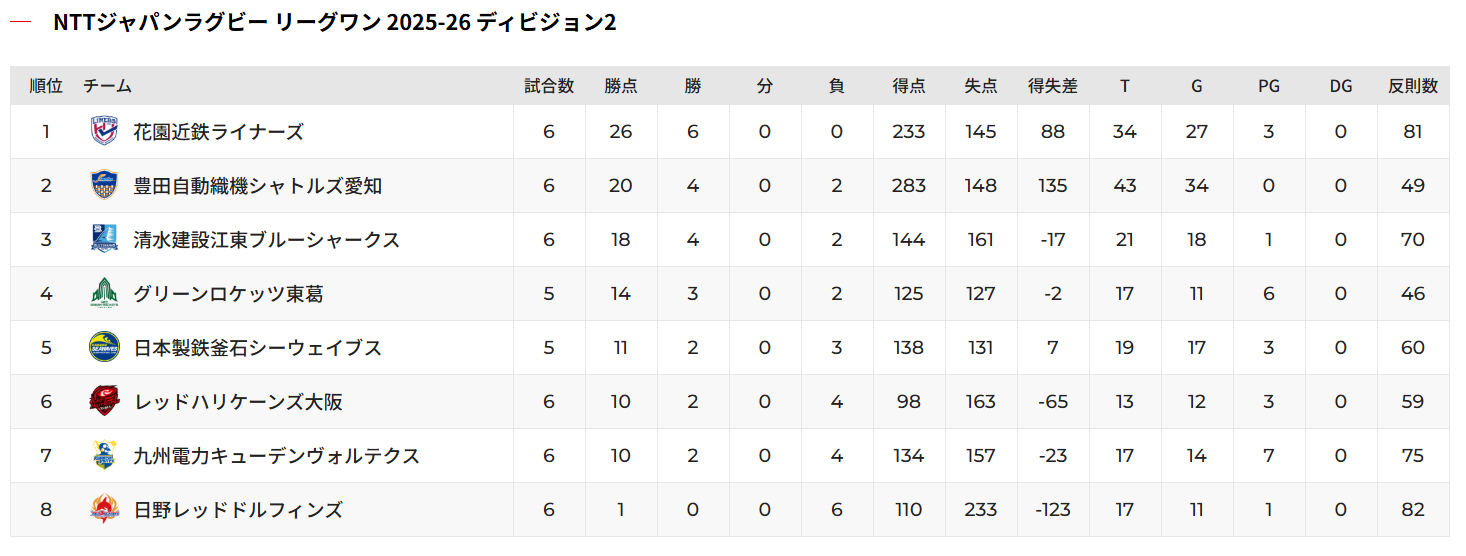 2026年2月22日現在の順位表はこちら